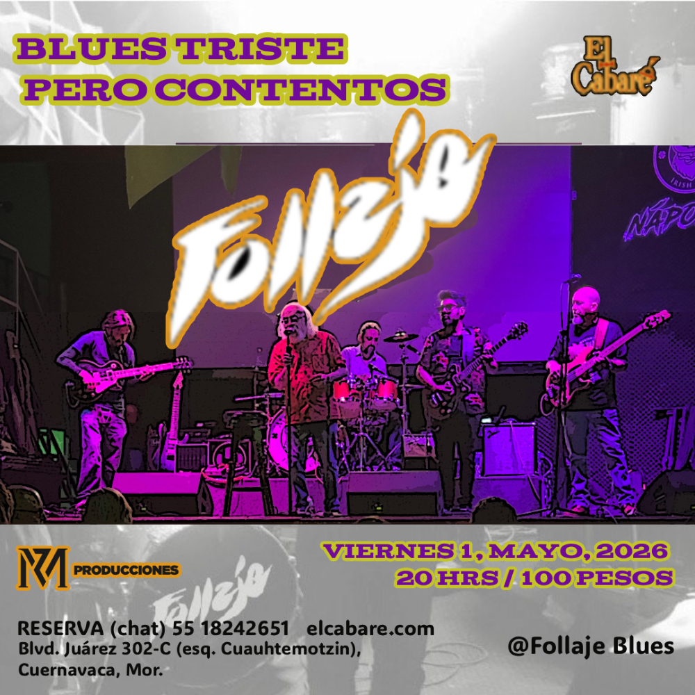 Viernes 1 (música: blues) Blues triste pero contentos / Follaje blues, desde CDMX / 20:00 / $100 / Gustavo Rivera batería / Salvador Arceo bajo / José Luis González guitarra / Mauricio Oblea guitarra / Jorge García armónica y voz