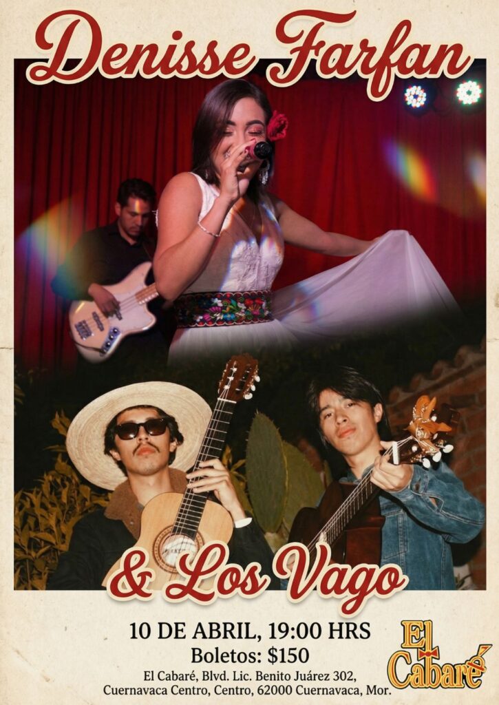 Viernes 10 (canto y guitarras) Tarde ranchera / Denisse Farfan y Los Vago / 18 hrs / $150 / Informes: 5518242651