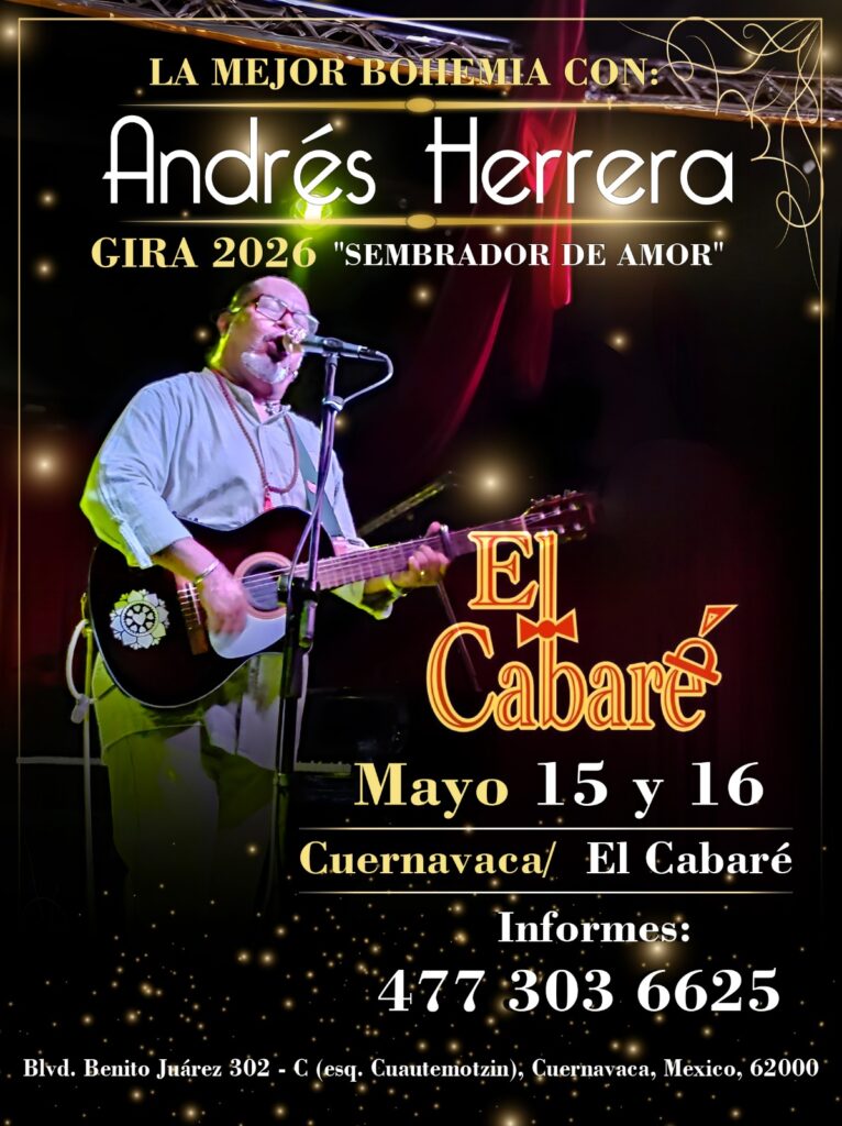 Viernes y sábado 15 y 16 (trova) Gira 2026 “Sembrador de amor” / Andrés Herrera / 20:00 Reserva: 477 303 6625