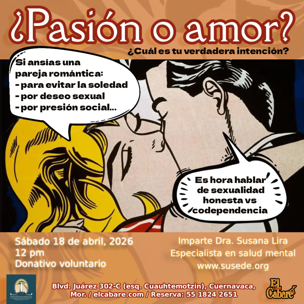 - Pasión o amor, ¿cuáles son tus verdaderas intenciones? (Plática de salud mental) / con Susana Lira / 12:00 pm / Donativo voluntario