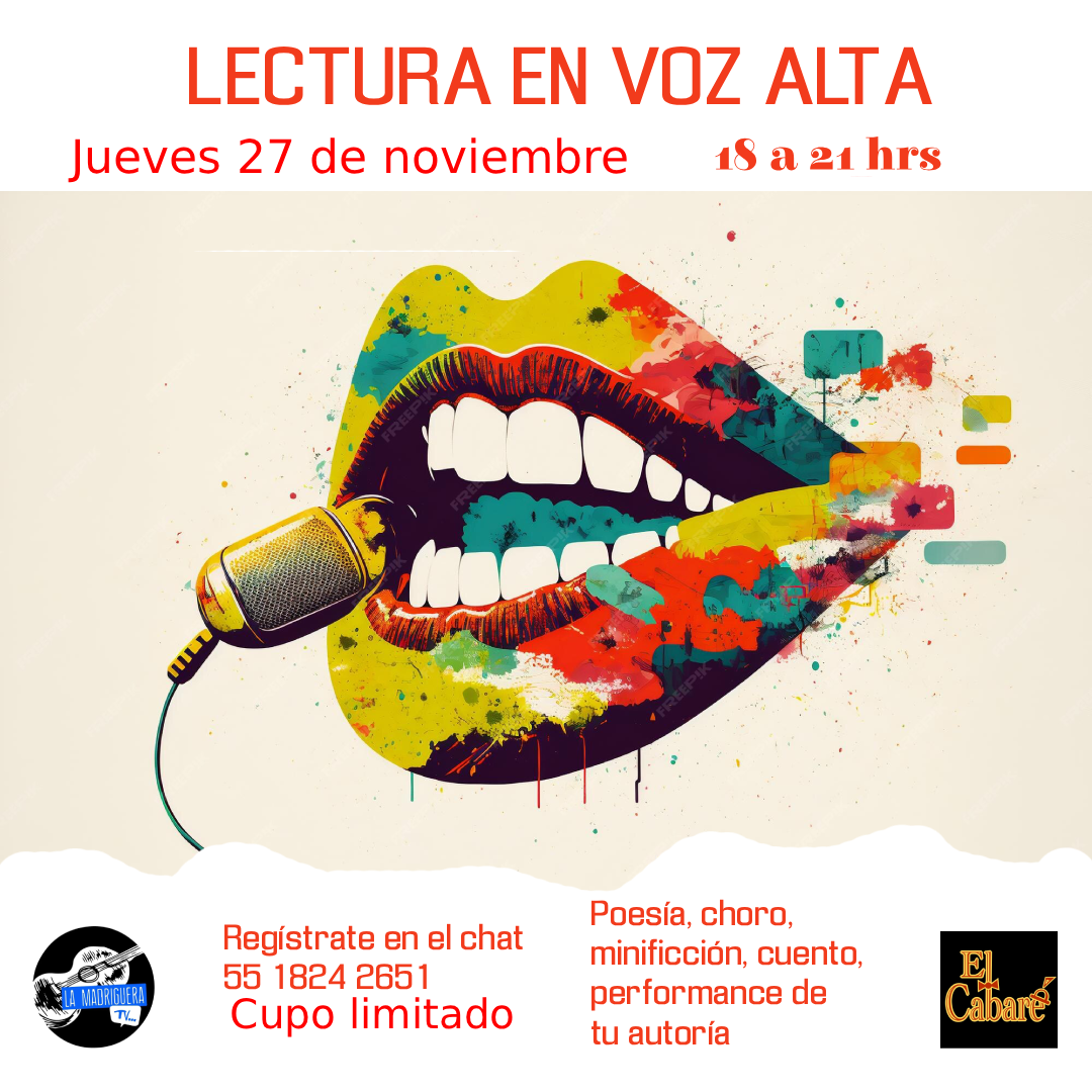 27 nov, Lectura en voz alta Jueves 27 de noviembre Regístrate en el chat, cupo limitado: 5518242651 7 a 9 pm, orden conforme vayan llegando.