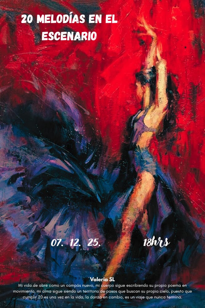 20 melodías en el escenario surge en celebración del cumpleaños 20 de Valeria SL, bailarina que a lo largo de estos 20 años su refugio y su mas grande pasión siempre ha sido la Danza.