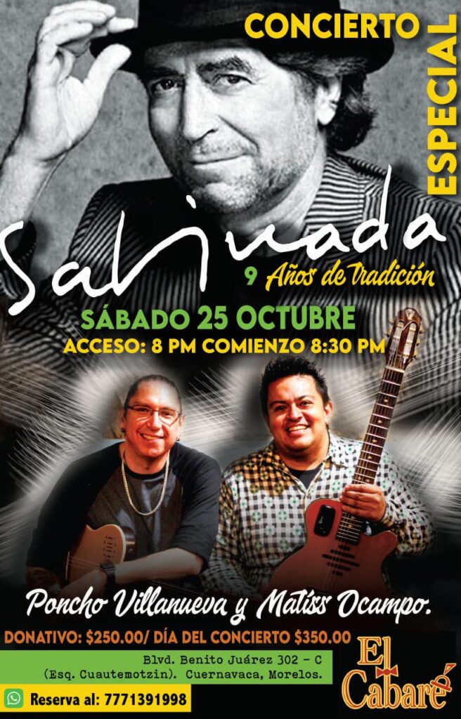 Sabinada, concierto especial 🎶 8:30 p.m. Concierto “Sabinada 2025”Poncho Villanueva y Matíss Ocampo interpretan a Joaquín Sabina💲 Preventa: $250.00 – Día del evento: $350.00