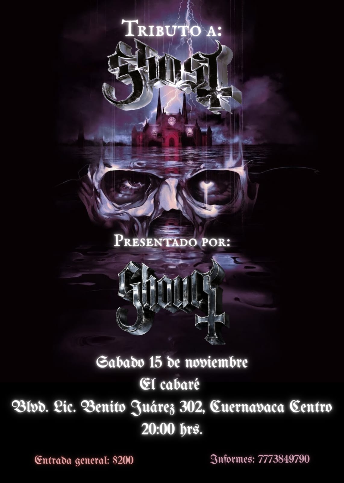 15 nov, música: Tributo a Ghost por Ghouls Concierto homenaje a la banda de metal Ghost llevado acabo por Ghouls, una experiencia potente y bien ejecutada. Sábado 15 de noviembre, 8 pm $200 Reserva: 777 3849790@ghouls_mx